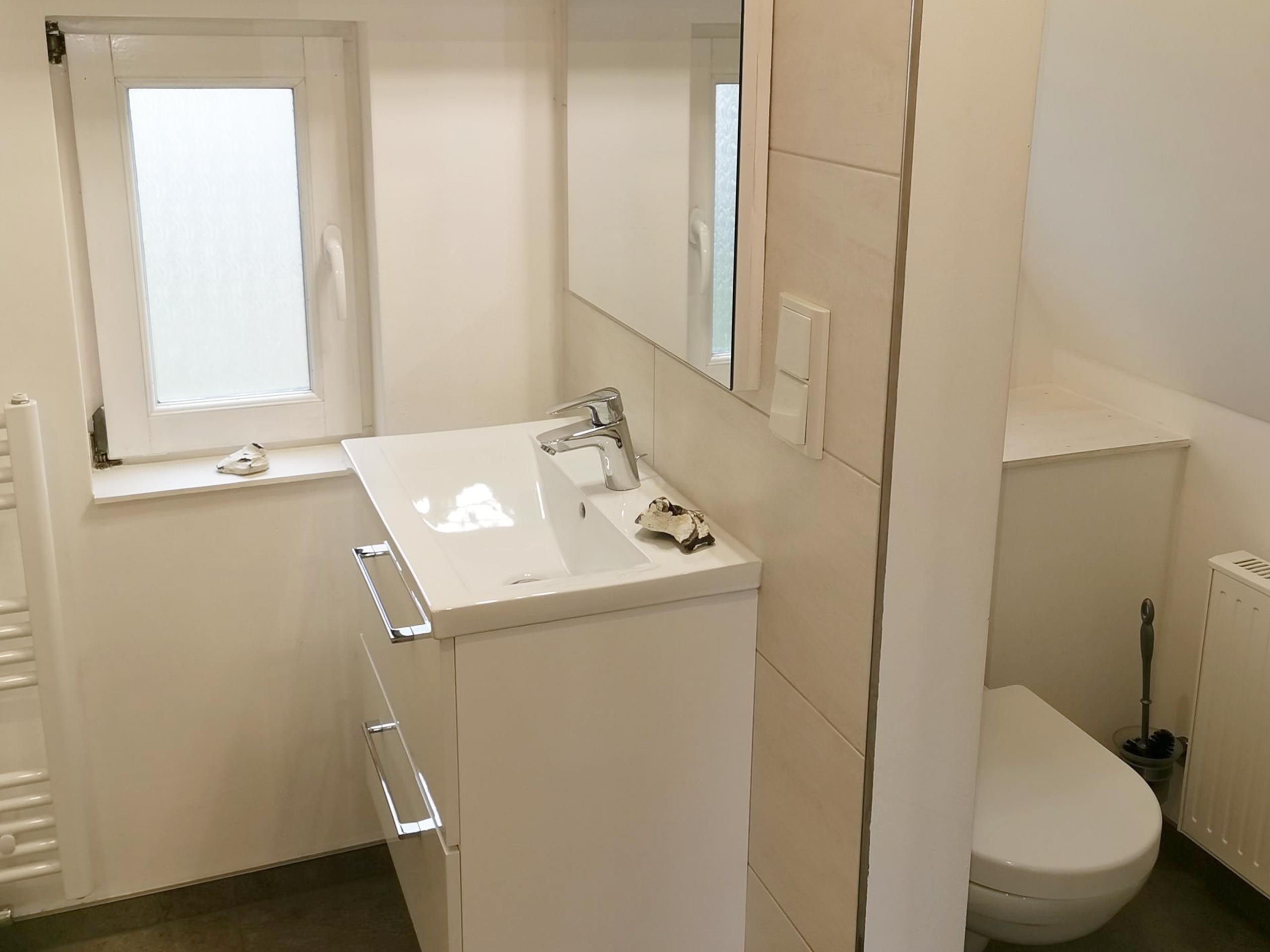 Die Dusche mit separatem Waschbecken und WC befindet sich ebenfalls im Erdgeschoss.